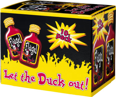 Faktiskt är den så populär att fans har uppfunnit ett helt ritual för intag av shottet: de ger flaskan ett par bank mot bordet, skruvar av locket, placerar det på nästippen, utbrister ett hjärtligt "prost!" och häller det sedan ner - utan att använda händerna, förstås. Kartongen innehåller 10x2 cl. Flügel.